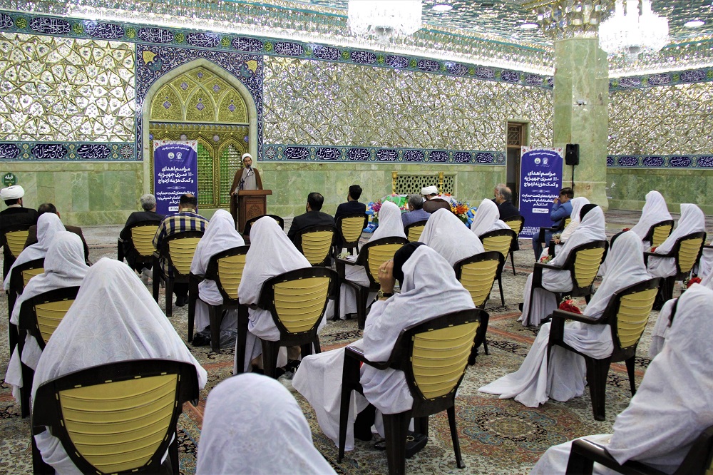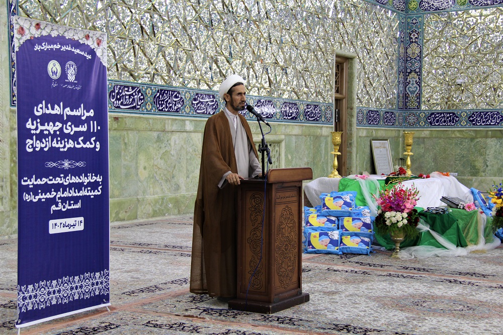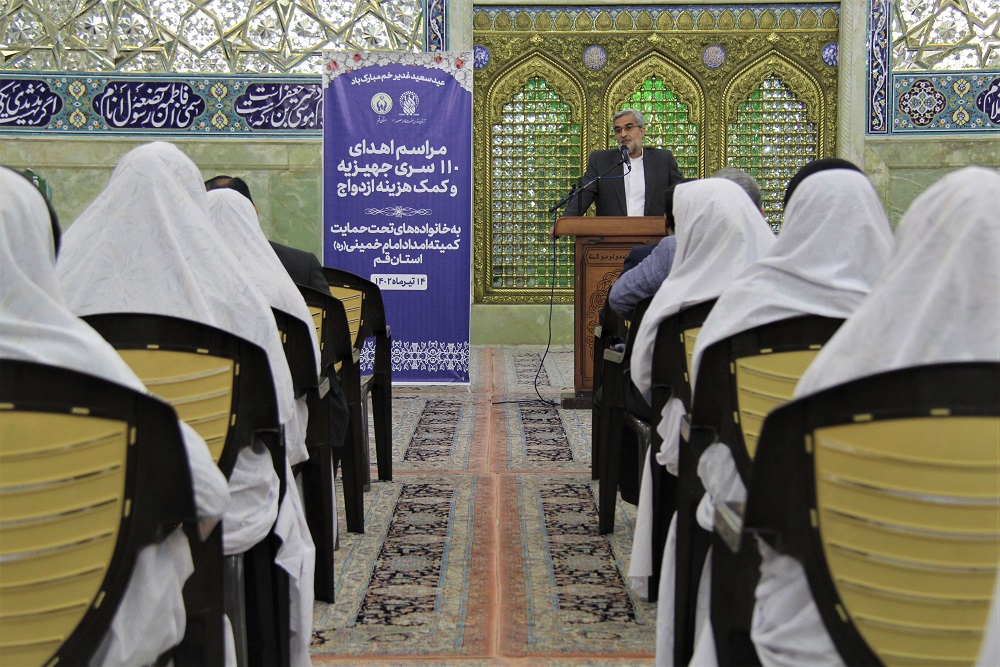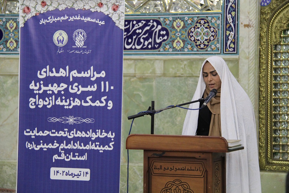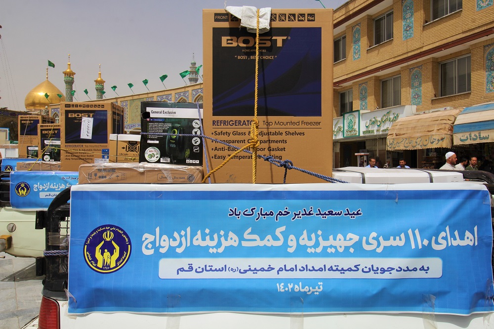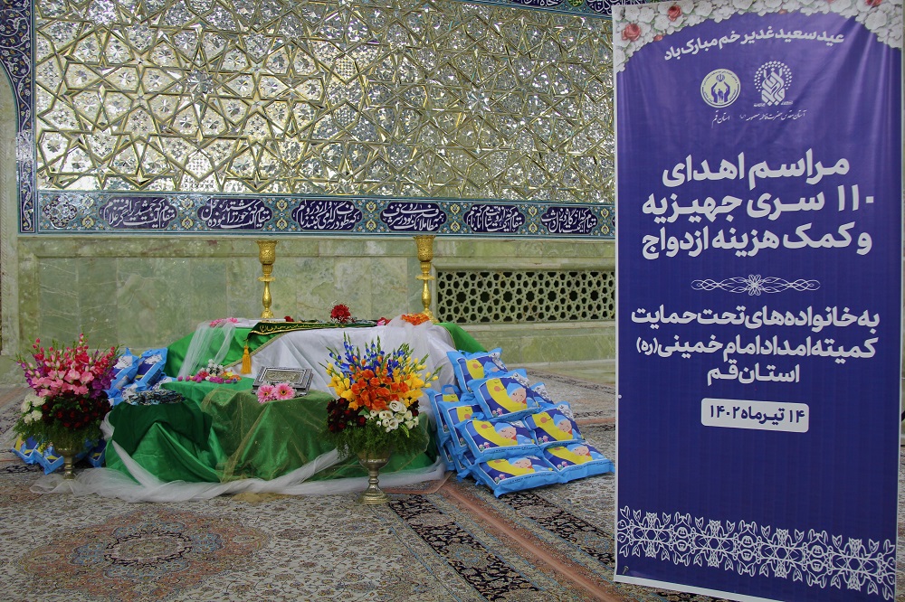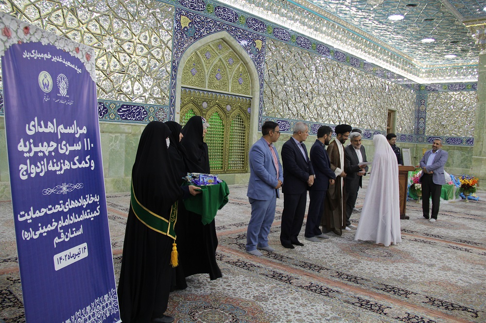 کمیته امداد امام خمینی(ره) استان قم به مناسبت دهه امامت و ولایت و در آستانه عید سعید غدیر خم با برگزاری مراسمی در شبستان حضرت زهرا(س) حرم مطهر حضرت معصومه(س) 110 کمک جهیزیه به نوعروسان تحت حمایت خود اهدا کرد.